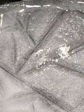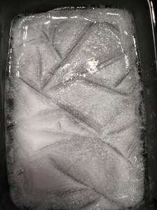 I don’t actually feed the cats in the barn anymore because I’m afraid of slipping on the snow or ice. I have one group who eats at the kitchen door and one group who eats on the front porch. I have had to use takeout containers and change them twice a day because they constantly freeze. The ice makes very interesting patterns, almost like tree branches.